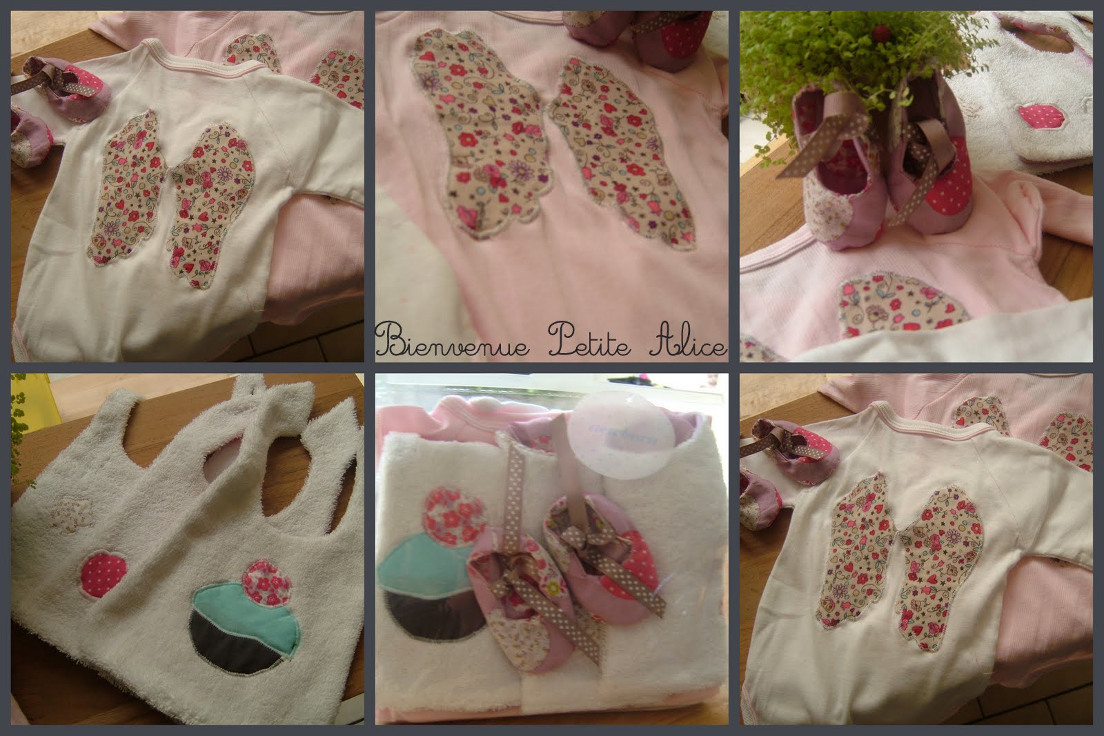 | -Pour Sophie qui a eu une petite Alice cet été - body et bavoir, petits chaussons - |