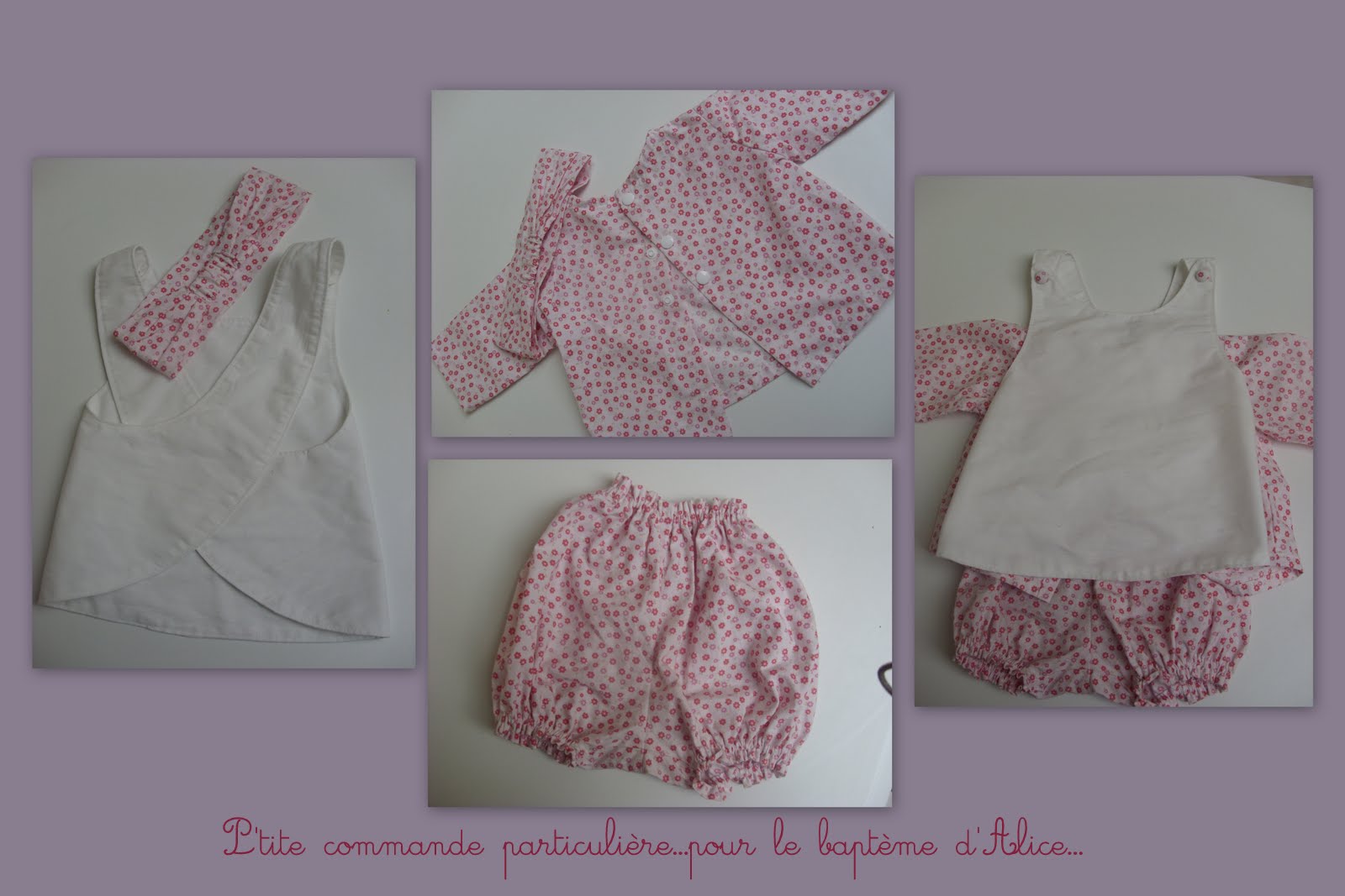 Petite cousette pour une petite Alice...Commande particulière d'une collègue pour le baptème de sa petite fille : Bloomer Citronille, Chemise sans col Citronille et célèbre tablier croisé...Petit bandeau maison...Le tout dans un petit coton fleuri du marché de Tourcoing !!! Ah là là, on attend vraiment ce soleil...